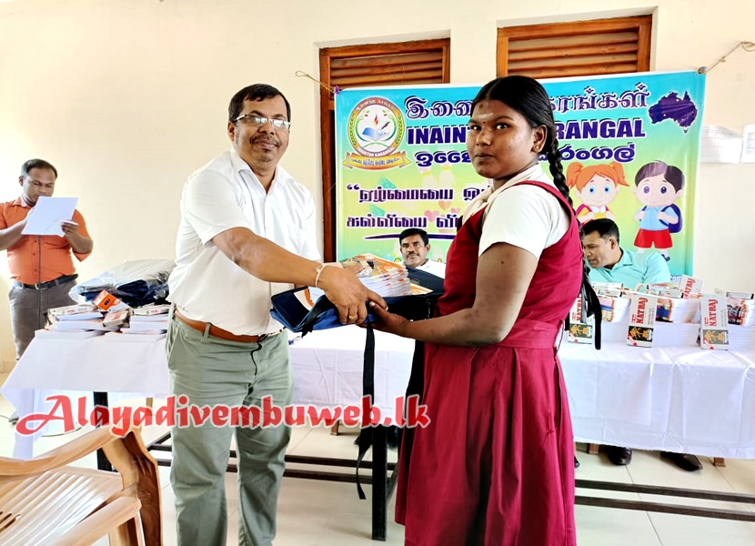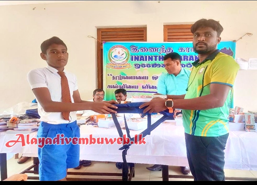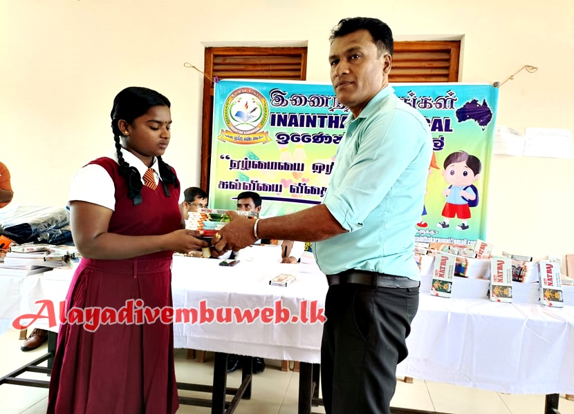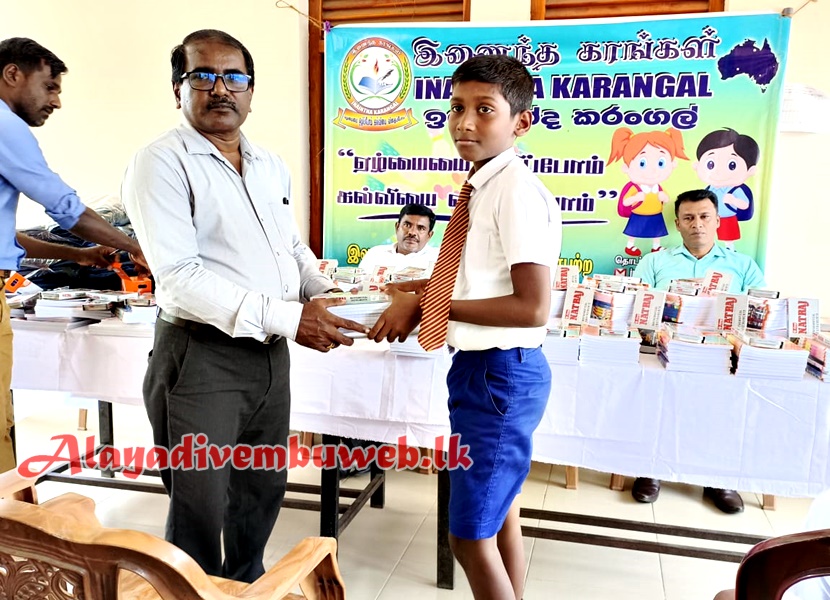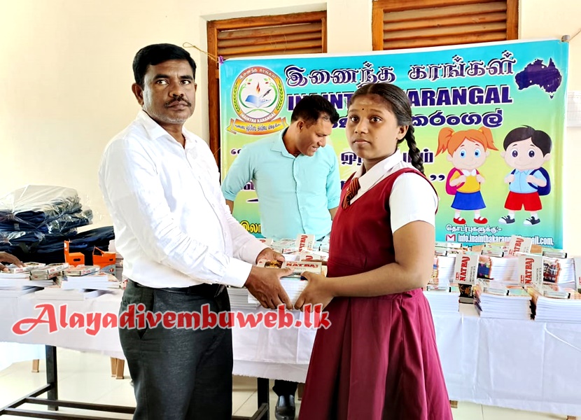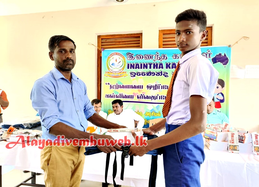இணைந்த கரங்கள் அமைப்பின் உறுப்பினர்களான, லோ.கஜரூபன், சி.காந்தன் ஆகியோர் கலந்து கொண்டு 50 மாணவர்களுக்கான பாடசாலை செல்வதற்கான கற்றல் உபகரணங்கள் மற்றும் புத்தகப்பை என்பன வழங்கி இருந்தமை குறிப்பிடத்தக்கது.