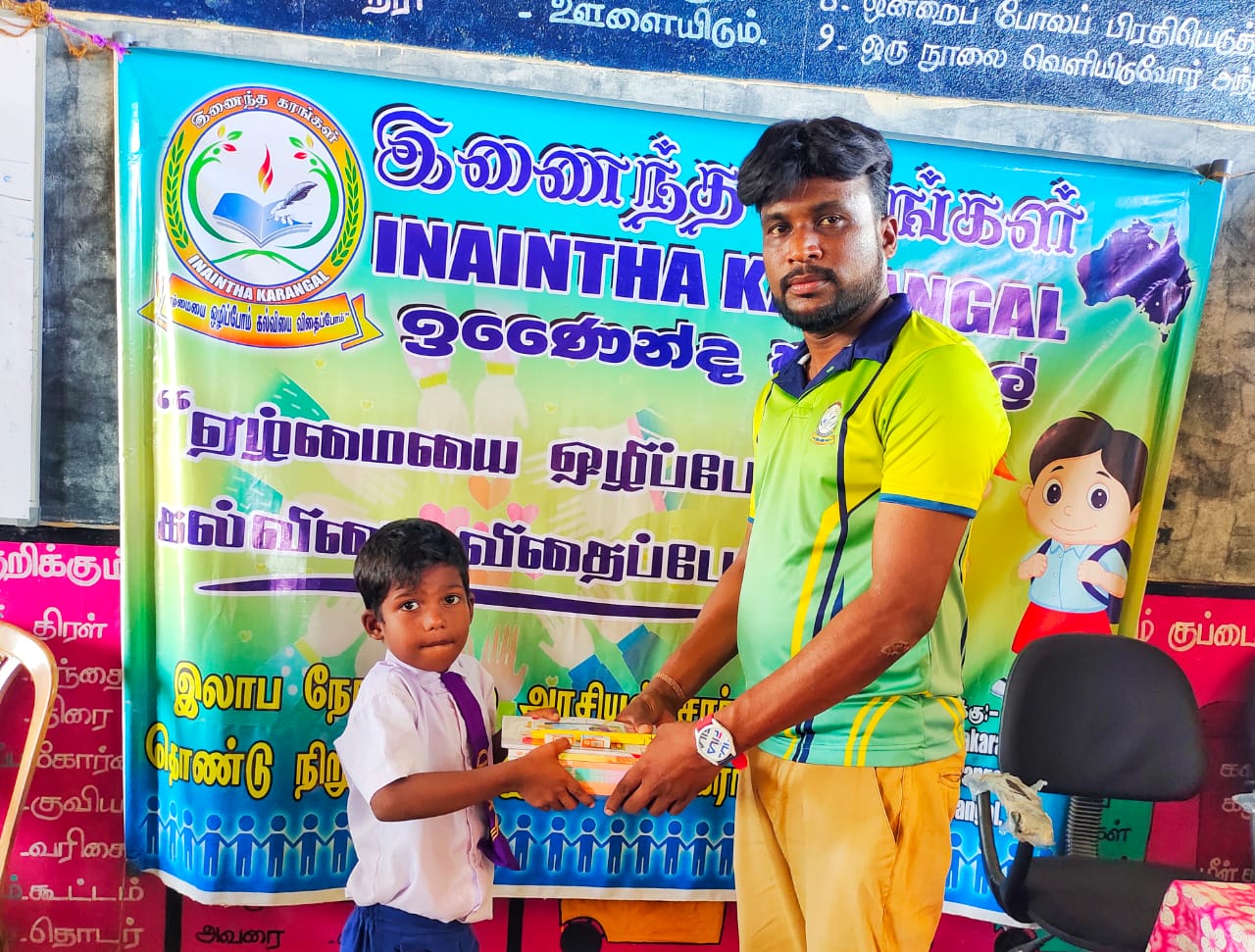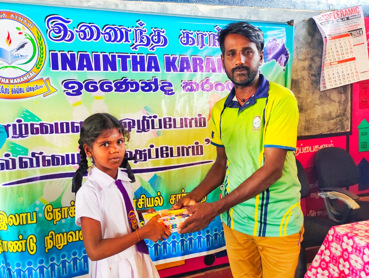 “எழ்மையை ஒழிப்போம் கல்வியை விதைப்போம்” எனும் தொனிப்பொருளில் இணைந்த கரங்கள் அமைப்பானது மாணவர்களுக்கு கற்றல் உபகரணங்களை பல கஸ்ர பிரதேசங்களில் உள்ள பாடசாலை மாணவர்களுக்கு கடந்த இரண்டு வருடங்களாக இணைந்த கரங்கள் அமைப்பானது உதவியினை வழங்கியிருந்தது.