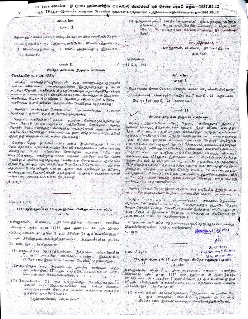 1987.05.12 ஆம் திகதி வர்த்தமானியின் குறித்த பக்கத்தின் உறுதிப்படுத்தப்பட்ட பிரதி