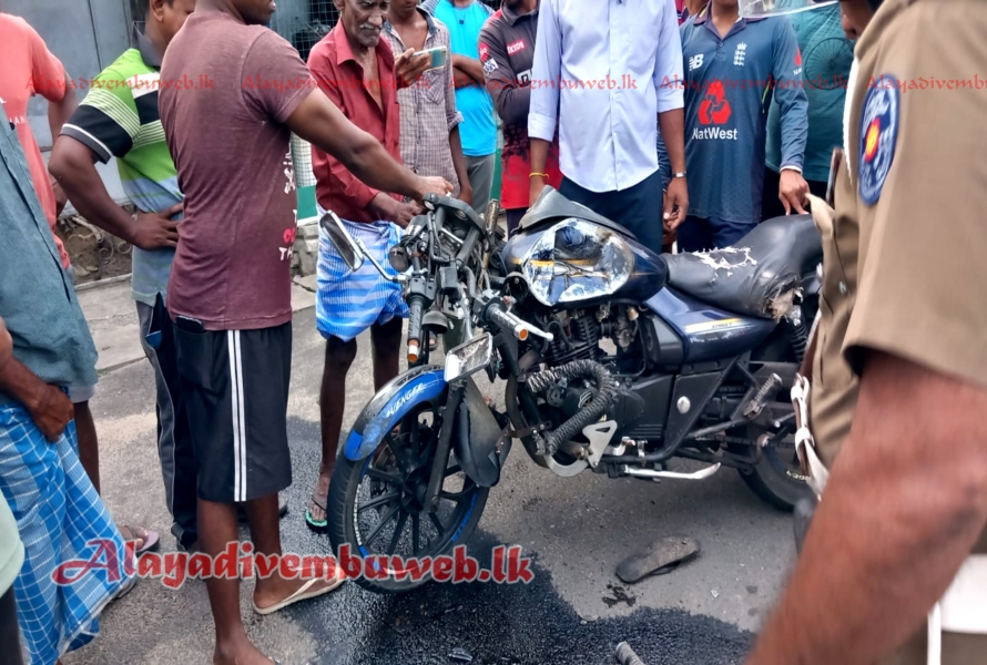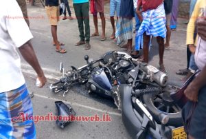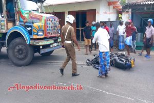 திருக்கோவிலில் இருந்து அக்கரைப்பற்றை நோக்கி பயணித்த லொறியும் திருக்கோவிலை நோக்கி பயணித்த மோட்டார் சைக்கிளும் நேருக்கு நேர் மோதி இவ்வாறு விபத்துக்குள்ளாகியுள்ளன.
