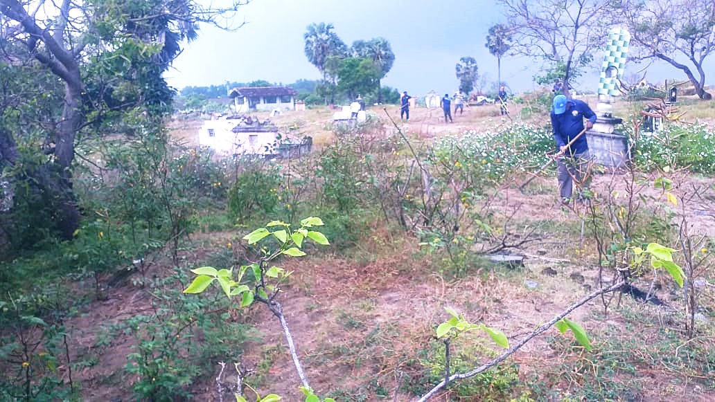 பொது மயானமானது நீண்டகாலமாக பராமரிப்பற்ற நிலையில் முட்புதர்கள், பற்றைக் காடுகள், கற்கள் என்பனவற்றோடு குப்பைகளும் நிறைந்து காணப்பட்டு வந்த நிலையில்.