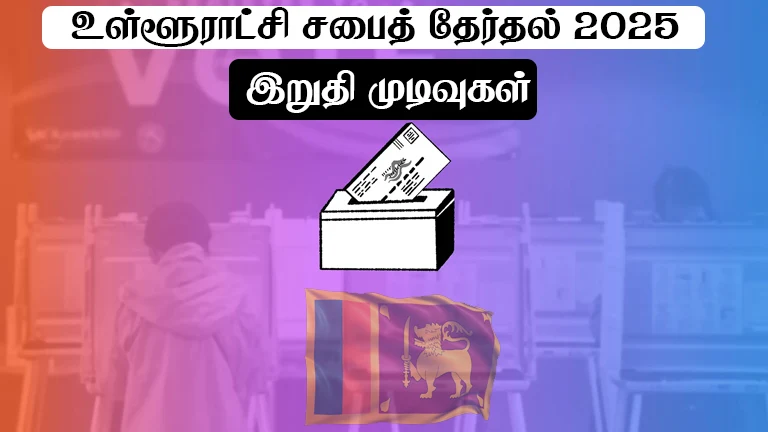 நடைபெற்று முடிந்த உள்ளூராட்சி சபைத் தேர்தல் இறுதி முடிவுகள் இன்று புதன்கிழமை (08) வெளியாகியுள்ளது.