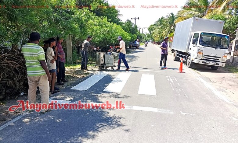பிரதேச சபை உறுப்பினர் பா.கதிகரன் கோரிக்கைக்கு அமைவாக பாதசாரி கடவை அமைக்கும் வேலை முன்னெடுப்பு.