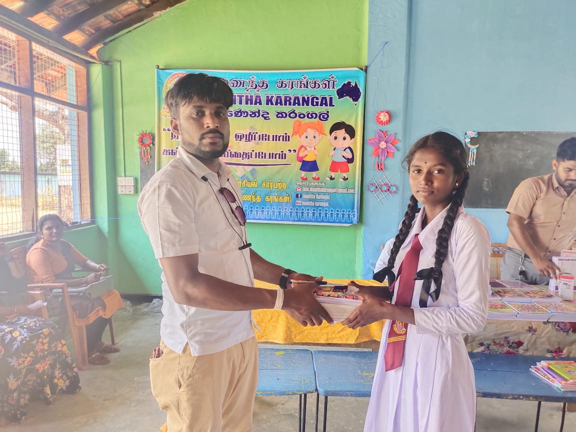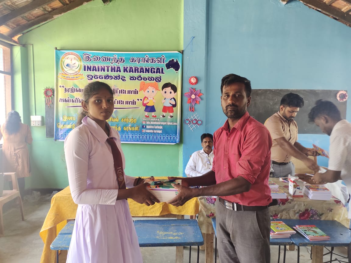 மேலும் இன் நிகழ்வில் பெற்றோர்கள் மற்றும் இணைந்த கரங்கள் உறுப்பினர்களாகிய திரு.லோ.கஜரூபன், திரு.எஸ்.காந்தன், திரு.சி.துலக்சன்,திரு. தெ.சிருஸ்காந், ஆகியோர் கலந்து கொண்டு மாணவர்களுக்கான கற்றல் உபகரணங்கள் வழங்கி வைக்கப்பட்டமை குறிப்பிடத்தக்கது.