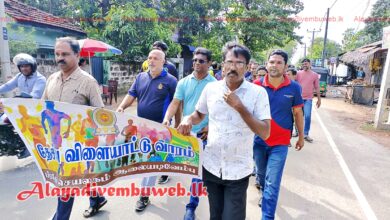 விளையாட்டு வாரத்தை முன்னிட்டு ஆலையடிவேம்பு பிரதேச உத்தியோகத்தர்களால் விளையாட்டுத் துறையை மேன்படுத்தும் நோக்கில் நடைபவனி ஒன்று இன்றையதினம் (12) மேற்கொள்ளப்பட்டது. இவ் நடைபவனியில் ஆலையடிவேம்பு பிரதேச செயலாளர்…