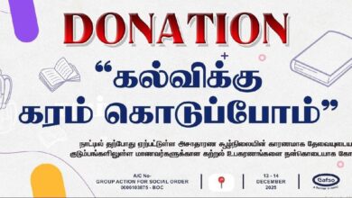 கடந்த டித்வா புயலில் சிக்குண்டு தமது உடமைகளை இழந்த உறவுகளுக்கு பல பாகங்களில் இருந்தும் அனர்த்த நிவாரன பொருட்கள் அனுப்பப்பட்டிருந்தது. வெள்ளத்தில் சிக்குண்டு தமது பாடசாலை உபகரணங்களை…
